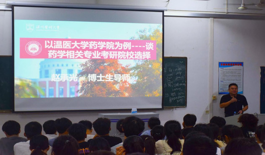 (学生通讯员 应丽娅 黎荣 陈心如 刘慧敏)为激发同学们的创新思维和学习动力,指导在校学生考研择校,10月18日晚,我院于逸夫楼教室开展校友讲座,讲座由该院2006届药学专业优秀校友——温州医科大学教授、博士生导师赵承光、2006届化学专业优秀校友——中国科学院大连化学物理研究所副研究院陈木旺担任主讲,该院22、23、24级部分相关专业的同学参加。