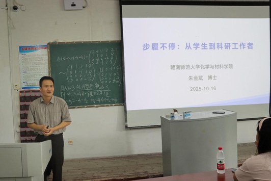 (学生通讯员 乐诗琦 饶品诺)为充分发挥优秀校友的榜样示范作用,引导在校学生科学规划学业与职业生涯,10月16日下午,药学院在人文楼教室举办“步履不停:从学生到科研工作者”优秀校友讲座。此次讲座由赣南师范大学教师、博士、我校2010级制药工程专业校友朱金斌担任主讲,药学院党委副书记陶华蕾主持,2025级一百余名新生到场聆听。