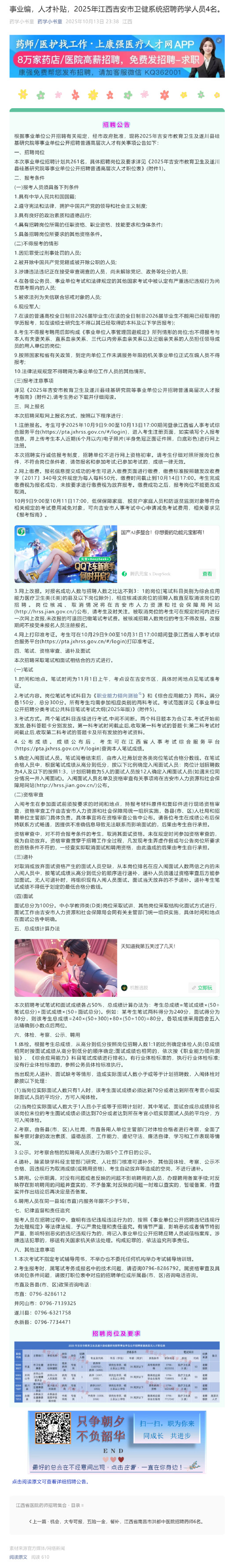 事业编,人才补贴,2025年江西吉安市卫健系统招聘药学人员4名
