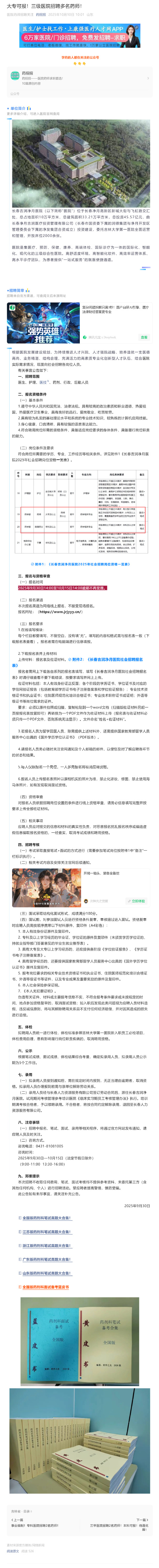 大专可报!三级医院招聘多名药师!