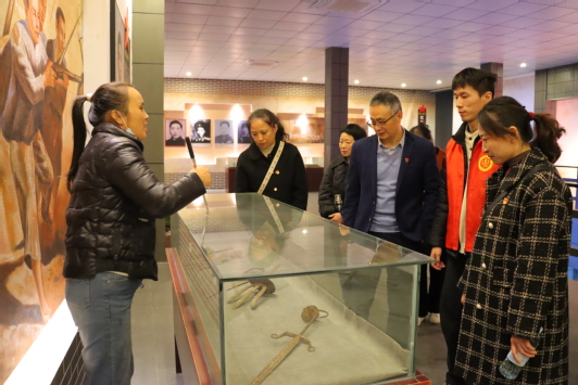 在水江红色教育馆内,“革命时期的医疗后勤保障”展区格外引人注目。当年群众用于疗伤的草药标本、带着岁月痕迹的石臼等展品,仿佛将大家带回了烽火连天的革命岁月。党员教师结合展品,生动讲解了中药在革命后勤保障中的重要作用,又联动当今药学现代化研究中的丰硕成果,让大家深刻理解了“传承红色药学精神,推动专业高质量发展”的品牌内涵。