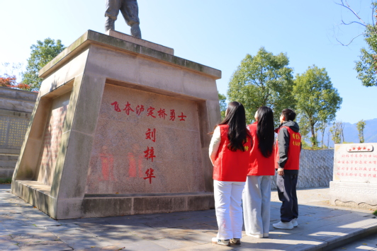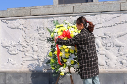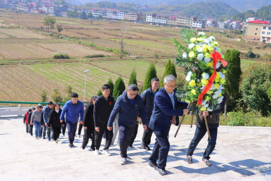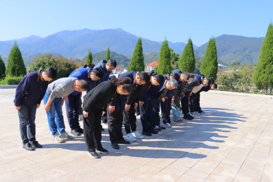 上午10时,大巴车抵达水江革命烈士陵园。党员们怀着崇敬之心,向烈士纪念碑敬献了印有“传承红色基因 践行药学初心——药学院‘药宜红’青年先锋敬挽”的定制花篮。全体干部整齐列队,三鞠躬后低头默哀一分钟,偌大的陵园内静得只能听见风声,对先烈的缅怀之情在每个人心中静静流淌。
