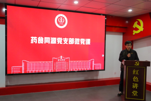 冬日的阳光温暖和煦,在红旗广场,药食同源党支部书记带领全体党员重温入党誓词,铿锵有力的誓言回荡在广场上空,佩戴着党徽的党员们神情坚毅,尽显“药宜红”青年先锋的昂扬风貌。