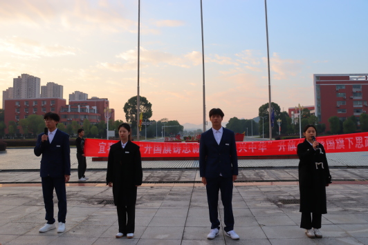 7时整,升旗仪式正式开始。庄严的《义勇军进行曲》奏响,鲜艳的五星红旗在晨光中冉冉升起。全体师生肃立注目,高唱国歌,目光追随着国旗升至顶端,现场氛围庄重而热烈。升旗仪式后,药学院25药学3班李志洋以《于时代星火中探寻真理,在万里归途上书写赤诚》为题,分享国家脊梁人物事迹。他以杨振宁先生的人生轨迹为脉络,生动讲述了先生心系祖国、深耕科研,将个人学术理想与国家科技发展紧密相连的动人故事,让在场师生深刻感悟到“国家脊梁”的使命担当与家国情怀。随后,智能制造与材料化工学院学生代表带来诗歌朗诵《祖国》,从山河壮丽到岁月峥嵘,从时代发展到未来可期,抒发了对祖国的赤子之心。活动尾声,全场师生齐声高唱《歌唱祖国》,激昂的旋律回荡在校园上空,嘹亮的歌声传递着对祖国的热爱与祝福。