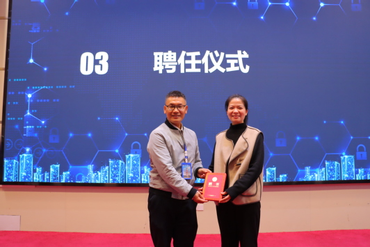 在庄重的聘任环节,翰林学校党总支书记周标江为彭玲博士颁发聘书,现场掌声响起,象征着荣誉与责任的传递。