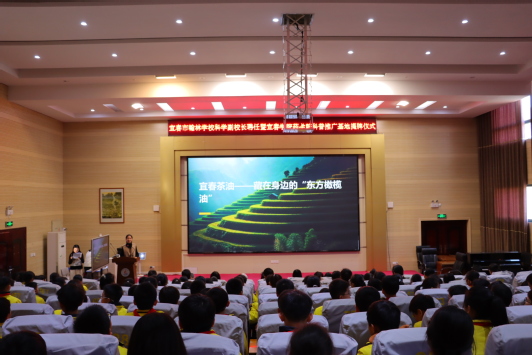 仪式最后,彭玲博士以“宜春茶油——藏在身边的‘东方橄榄油’”为主题,带来生动的“科技第一课”。她以亲切的语言,讲解茶油的科学知识、营养与应用,激发同学们对科学的兴趣与对家乡资源的热爱。