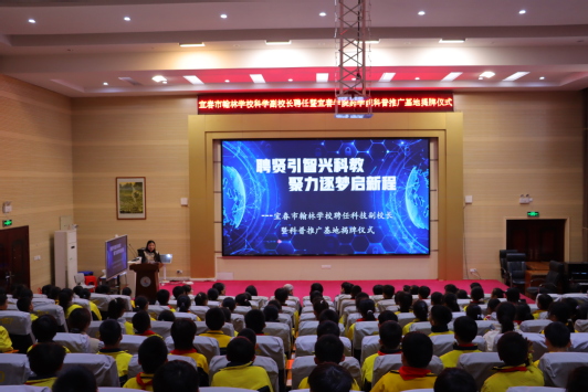 仪式由翰林学校张柳老师主持。翰林学校副校长李欣致欢迎辞,感谢我院长期支持,并期待以彭玲博士为纽带,把高校科研平台、师资与课程资源注入基础教育,助力中小学生科学素养提升。