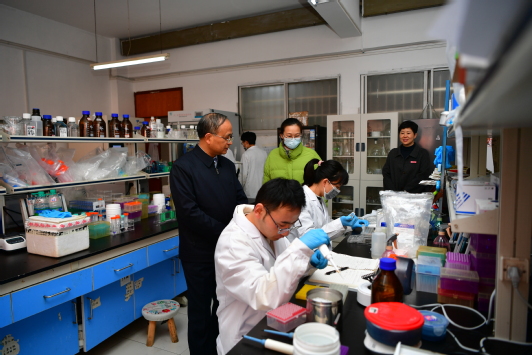 (本站讯)11月27日,校党委书记李国金深入药学院开展调研指导,实地察看实验室,看望科研人员。随后在药学院会议室,全体教职工参加调研座谈会,会议由院党委书记王霏主持。