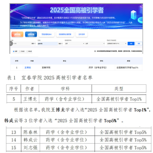 宜春学院药学院此次有4位学者入选 “2025 全国高被引学者” 榜单,这是对学院学者在药学及相关领域学术成果质量与学术影响力的高度认可,也充分彰显了学界对学院药学学科建设成效、学术辐射力的关注与肯定。接下来,药学院将进一步立足药学学科特色,发挥专业科研平台与学科积淀优势,持续推进有组织的药学领域科研攻关,聚焦医药健康产业发展需求深耕研究方向,不断提升学院学科学术硬实力与核心竞争力。