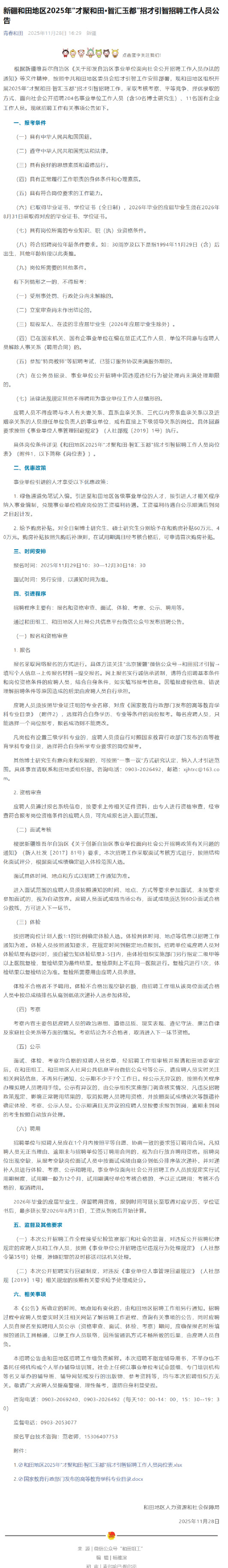 新疆和田地区2025年“才聚和田·智汇玉都”招才引智招聘工作人员公告