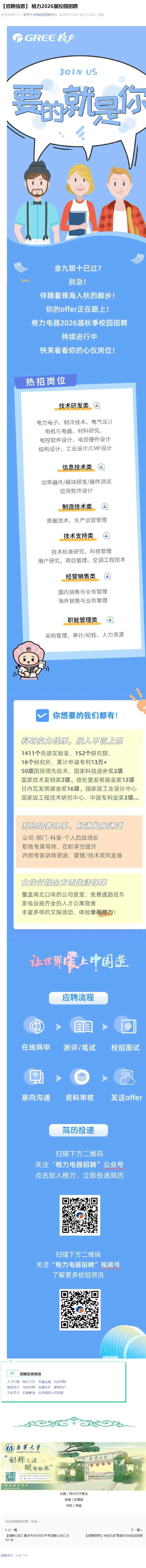 【招聘信息】 格力2026届校园招聘