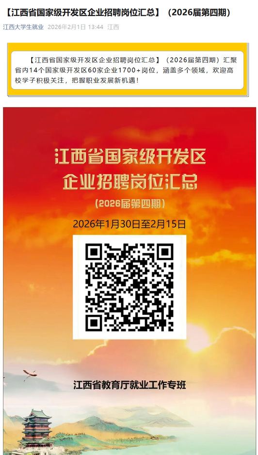 【江西省国家级开发区企业招聘岗位汇总】(2026届第四期)
