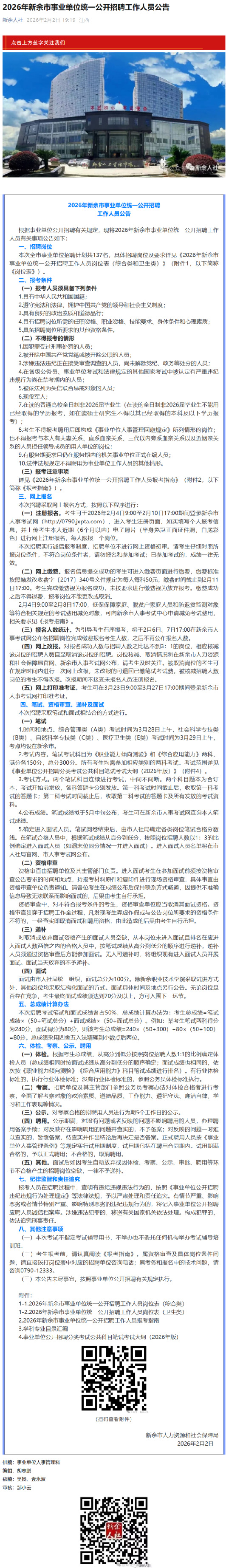 2026年新余市事业单位统一公开招聘工作人员公告 点