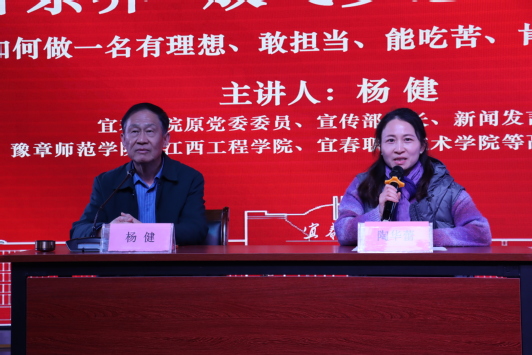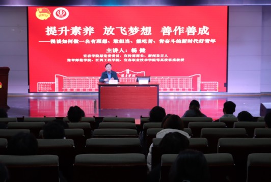 (学生通讯员 丁鹏程 赵俊豪)为深入学习贯彻新时代青年工作思想,引导学生坚定理想信念、强化责任担当,3月16日晚,药学院“青马工程”大骨班专题讲座在共青团青年发展中心学术报告厅举行。本次讲座特邀宜春学院原党委委员、宣传部部长、新闻发言人杨健教授担任主讲人,以“提升素养 放飞梦想 善作善成——漫谈如何做一名有理想、敢担当、能吃苦、肯奋斗的新时代好青年”为主题,为在场青年学子带来了一场思想深刻、内容生动的精神盛宴。讲座由院党委副书记陶华蕾主持。