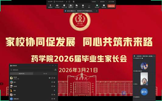 (学生通讯员 张治文)为深入推进就业育人工作,凝聚家校育人合力,助力毕业生实现高质量充分就业,3月20日至22日,药学院以“家校协同促发展 同心共筑未来路”为主题,面向2026届毕业生家长召开线上家长会。