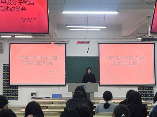 (学生通讯员 李畅 尹瑞博)为引导入党积极分子在学风建设中发挥积极作用,提高大一学生晚自习学习效率,2月19日下午,我院于二教楼教室组织入党积极分子召开新生晚自习学风督促活动动员会。此次会议由学生党支部书记闵捷主持,23级全体入党积极分子参加。