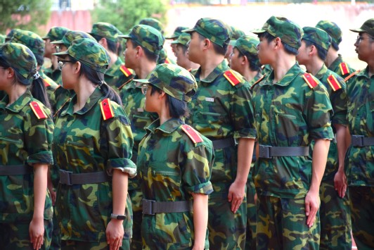 起初,转体的节奏总有些参差不齐。有人转体时重心不稳,脚掌在地面擦出细碎的声响;有人手臂摆动的弧度偏差分毫,与身旁同学的动作难以同步;还有人转体后头部未能及时定位,目光游离在队列之外。教官没有急于催促,而是分解每个动作细节:“转体时脚掌要稳,重心落在前脚掌,手臂贴紧裤缝,转体后下颌微收,目光直视前方。”他示范着标准动作,指尖划过裤缝的弧度、脚掌碾地的力度,都成了新生们模仿的标尺。渐渐地,“向左转”“向右转”的口令下,方阵里的转体动作愈发整齐——脚掌碾地的声音汇成统一的节奏,手臂摆动的弧度如刀切般一致,转体后的目光齐刷刷投向同一方向。