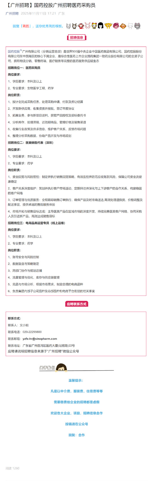 【广州招聘】国药控股广州招聘医药采购员