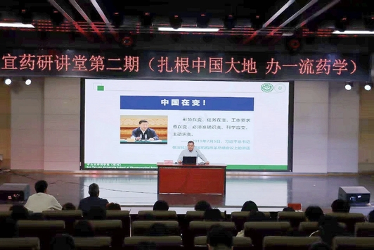 (本站讯)为深化药学专业内涵建设、拓宽师生学术视野、引领青年学子成长成才,2026年4月14日,药学院特邀中山大学(深圳)药学院院长邓文斌教授做客宜药研讲堂,他以扎根中国大地,办一流药学为主题,为全院师生带来一场兼具思想高度、学术深度与实践温度的精彩报告。校党委委员、副校长黄诚出席,200余名本硕学子现场聆听,共赴这场学术之约。报告由药学院副院长张兵锋主持。