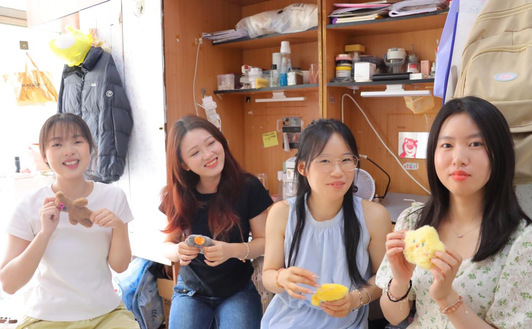 “一个人可以走得很快,但一群人才能走得更远。”笔者了解到,临近考期,紧张和焦虑弥漫在廖艺周围,也催生出专属于她独特的解压记忆:半夜10点半冲向烧烤摊的“治愈夜宵”、在寝室围坐夜谈释放情绪和互相安慰、临考前图书馆灯下与室友李芳芬裹紧外套互查考点的冬夜、生理学教材在昏暗光线下的斑驳影子……“有人在伸手不见五指的前方为你提灯,这种陪伴让你知道,你不是一个人在战斗。”这些苦中作乐的片段,成为支撑她走下去的微光。