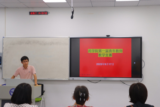 (学生通讯员 晏宇豪)为锤炼青年教师教学基本功,助推学院教学质量再上新台阶,9月17日下午,我院在第二教学楼举办首届青年教师教学竞赛。生物制药教研室、药学教研室及食品质量与安全教研室的骨干教师担任评委,5名青年教师同台竞技。