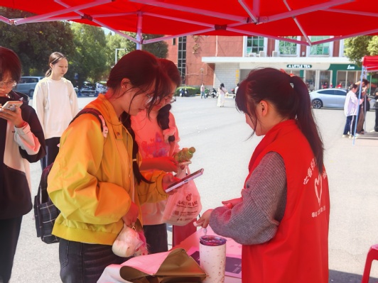 活动伊始,青年志愿者协会各部门提前半小时到位完成场地布置。“重阳知多少”趣味答题挑战则通过线上答题与线下闯关结合的形式,以起源、习俗、诗词等知识为考点,同学闯关成功即可兑换定制书签等奖品,答题区旁的知识展示板同步普及民俗文化。活动期间,各部门分工协作,志愿者全程提供引导、答疑等服务,现场秩序井然。